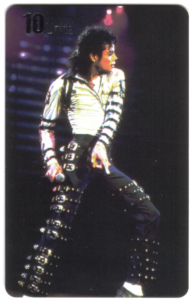 Vibrant Michael Jackson 10-unit card featuring his iconic moonwalk pose, bold costume, and stage lighting, celebrating his legendary influence on music and dance. |