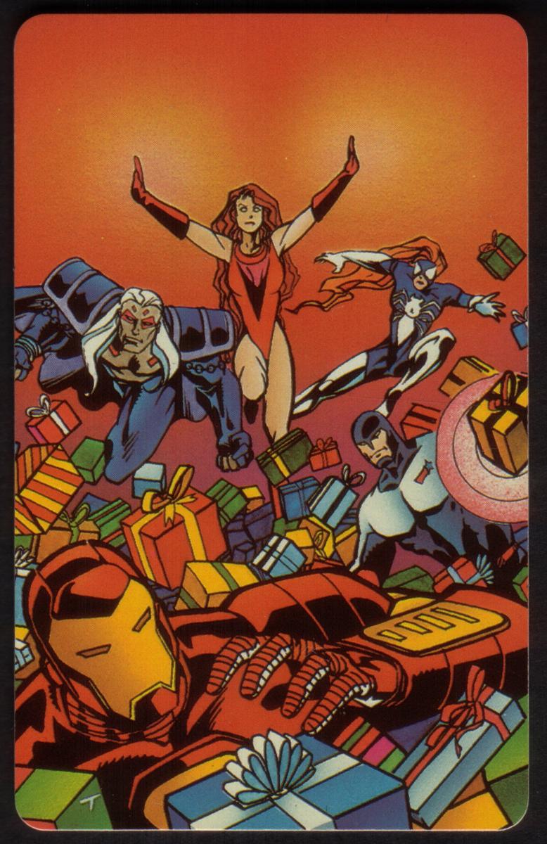 This collectible card is part of a series that celebrates holiday heroes from the Marvel universe, merging the excitement of comic book characters with the festive spirit of Christmas. The card blends artistic design and comic book imagery, capturing the essence of Marvel’s animation and comic strip artistry within a collectible format connected to telecommunication themes.