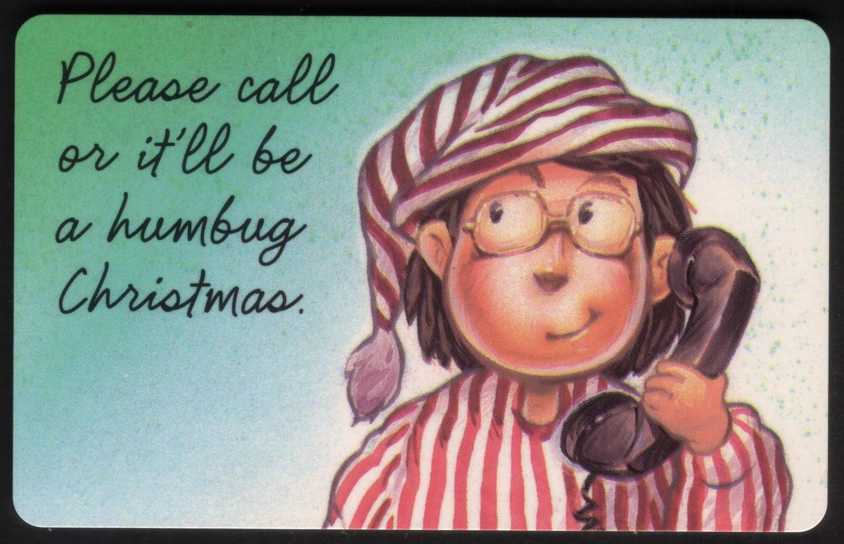 The card includes the phrase "Please Call or It'll Be a Humbug Christmas" printed in white text across the lower portion of the image. The handset and telephone cord are green, matching the holiday theme. The Hallmark logo and Sprint branding are also present, indicating the card’s official licensing and collaboration. The overall tone of the card combines holiday cheer with a playful message encouraging a phone call during Christmas.