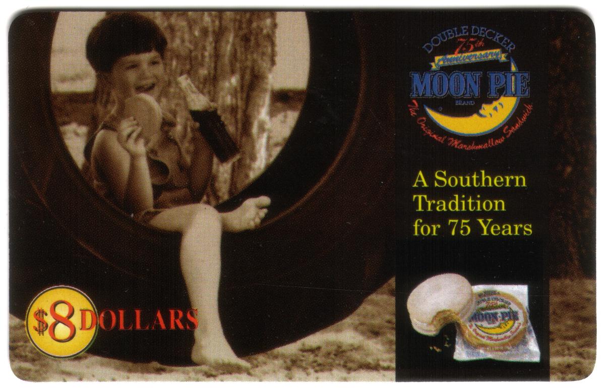 Also present on the card is the logo "DeltaCom," which identifies the issuing entity. The overall design blends a warm, southern Americana theme with clean, modern lettering to celebrate the longstanding cultural phenomenon of Moon Pie. The card is a collectible item likely aimed at fans of nostalgic southern food traditions and snack memorabilia.