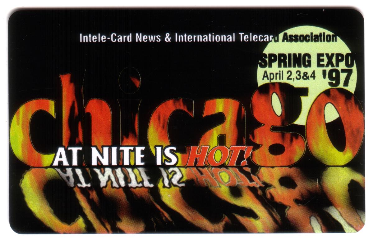 Keywords: Telecard Events, expos, show cards, artwork, artistic, chicago at night is hot, intele-card news & international telecard association, april 1997, southern new england bell, sneb, cdg, fire, snet, southern new england tel, Communications Design