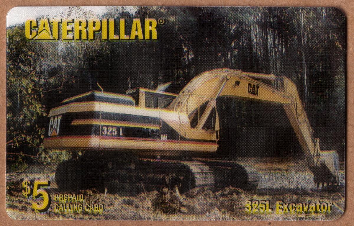 This collectible chip card features a detailed image highlighting a Caterpillar 325L Excavator, a piece of heavy equipment used in earthmoving and transportation. The excavator is depicted on a construction or work site setting, with visible caterpillar tracks and the characteristic yellow color of Caterpillar machinery. The machine is branded with the Caterpillar logo, confirming the equipment’s manufacturer. The card's design prominently showcases the industrial strength and utility of the earthmover.