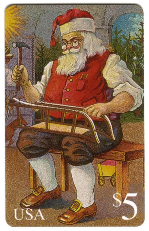 $5. Santa Working On Toy: 1995 U.S. Postal Service Christmas Trial