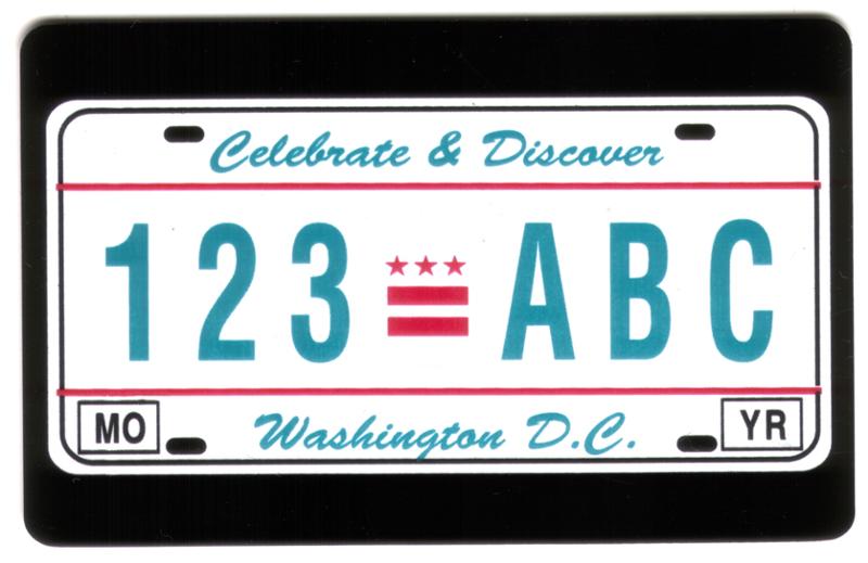 10m Washington, D.C. License Plate Card 'Celebrate & Discover' PROOF