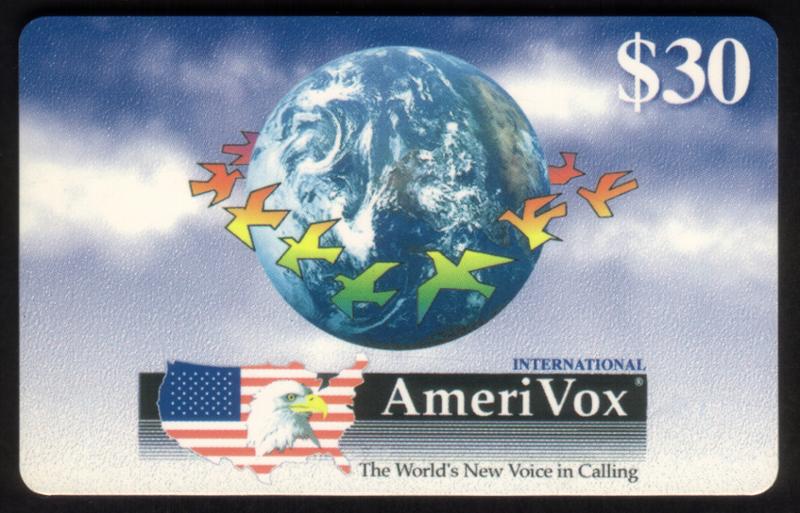$30. International Card (Horiz. Format - Peace Doves & Globe) USED