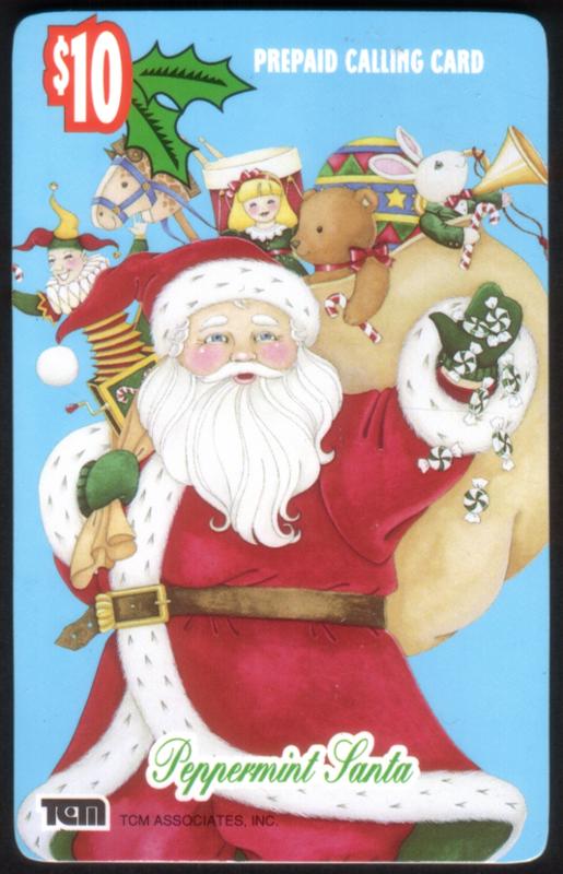 $10. 1994 Christmas Santa Card: Peppermint Santa With Bag of Toys