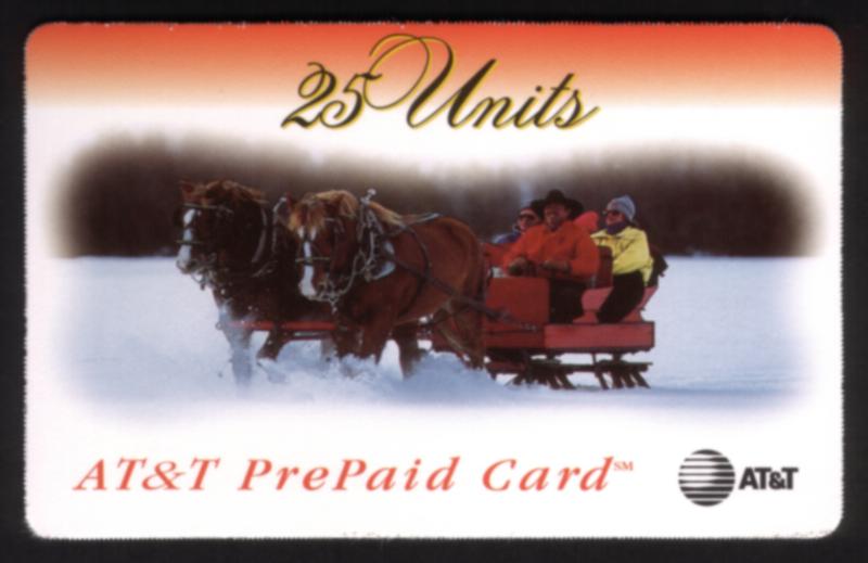 25u 'AT&T Prepaid Card' 3 People In Horse Drawn Sleigh Riding In Snow